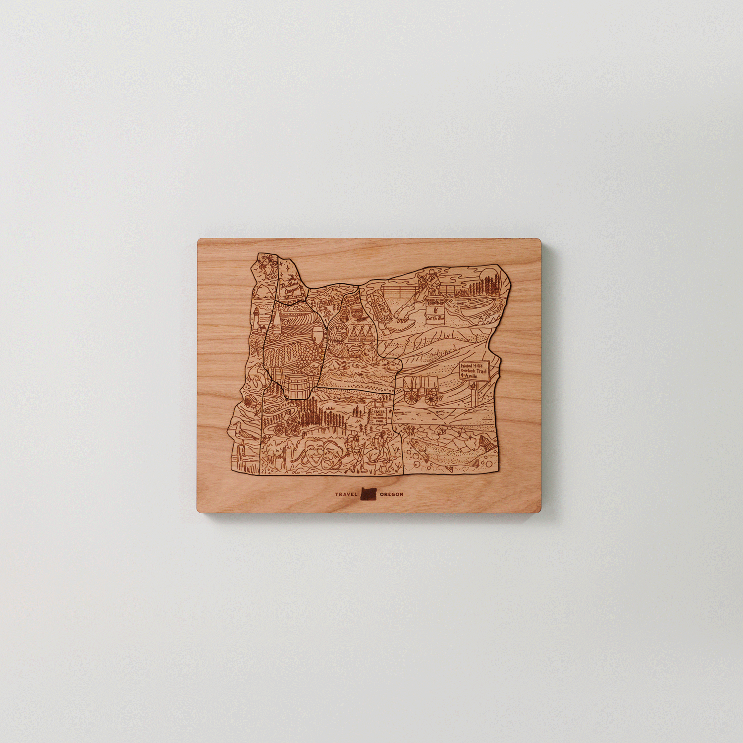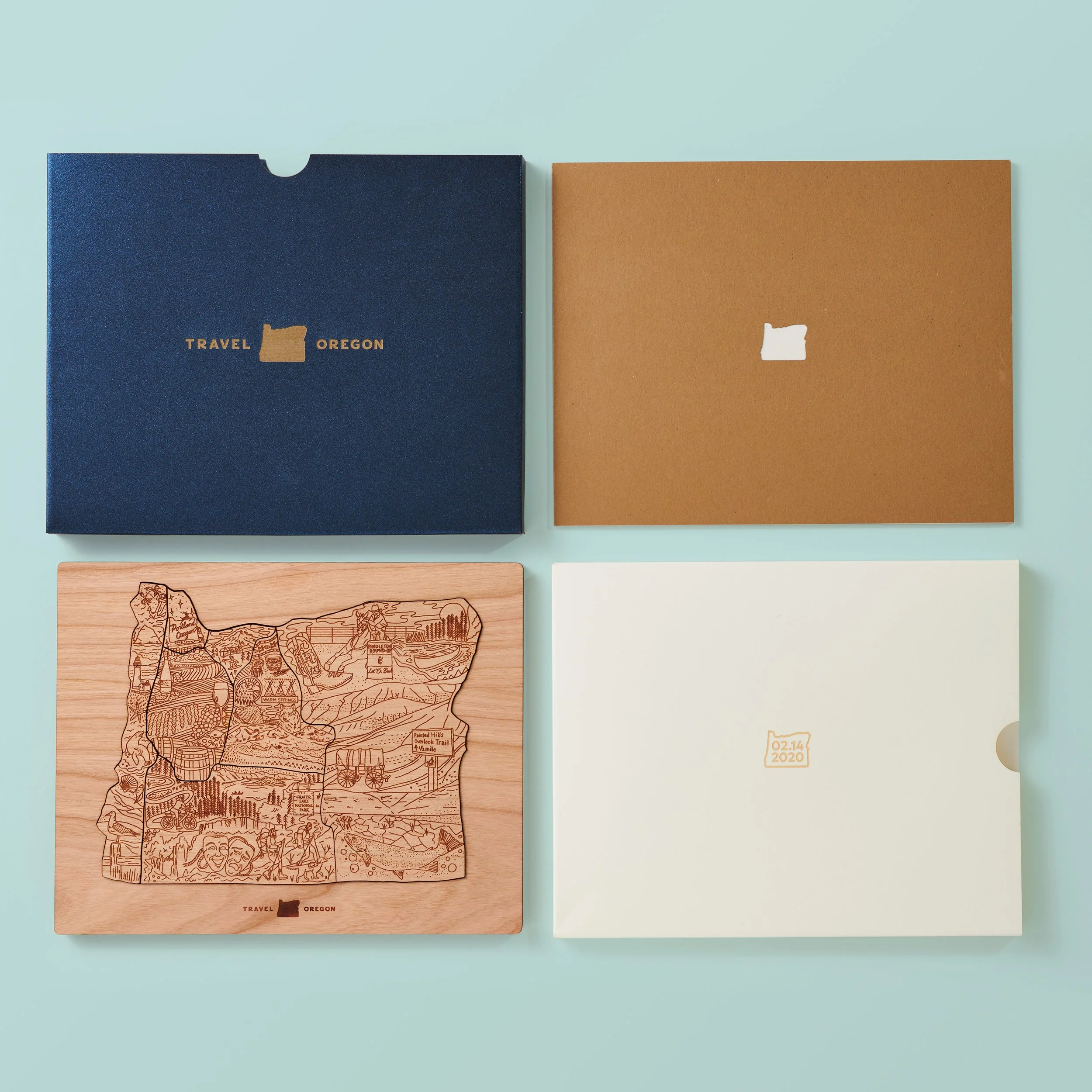 To commemorate a partnership of over 30 years between W+K and Travel Oregon, we presented their team with a unique, hand-crafted puzzle. I helped concept + illustrate the puzzle, creating a mosaic of illustrations that represented the seven different regions of Oregon.